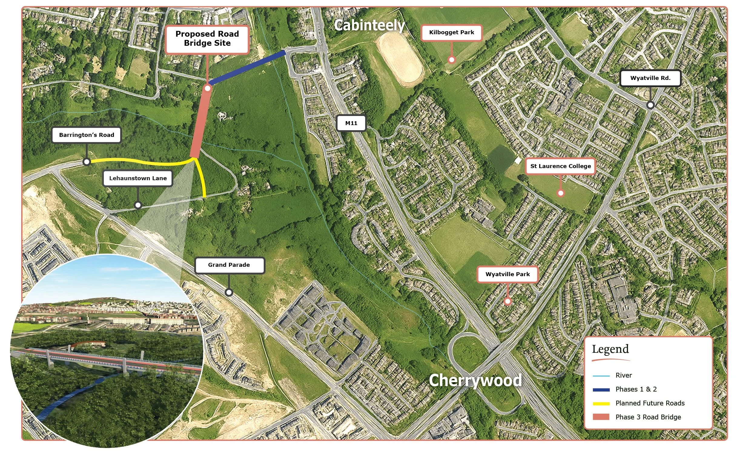 Dún Laoghaire-Rathdown County Council are undertaking a Non-Statutory Public Consultation on an Emerging Preferred Concept for a new bridge and associated infrastructure at Druid’s Glen in Cherrywood. This vital piece of infrastructure is required by the adopted Cherrywood Strategic Development Zone (SDZ) Planning Scheme (2014, as amended).